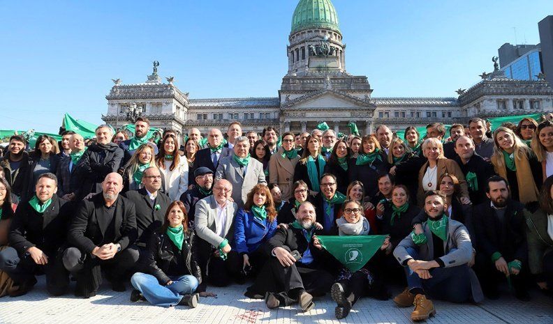 Los funcionarios se mostraron junto los diputados encabezados por Karina Banfi, Waldo Wolff, Daniel Lipovetsky y Sergio Wisky, los más identificados dentro de Cambiemos con la iniciativa por la legalización, y el senador nacional y presidente del PRO a nivel nacional, Humberto Schiavoni, y todos lucieron el pañuelo verde característivo de la Campaña Nacional por el Aborto Legal.
