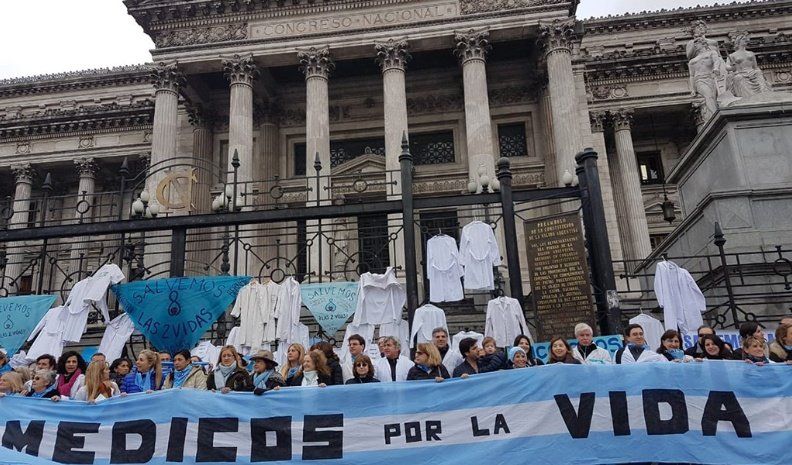 Un grupo de médicos realizaron hoy una protesta frente al Congreso Nacional en rechazo al proyecto para la legalización del aborto.