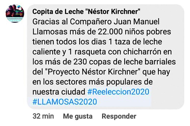 A Llamosas también le toca tener que salir a liderar con posteos donde se lo busca asociar a diferentes organizaciones vinculadas al kirchnerismo, sabiendo que si bien esta corriente del peronismo integra su actual lista y apoya su candidatura a la relección, la imagen de la expresidenta en la ciudad es muy mala.