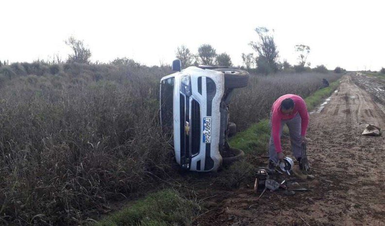 La pickup se desplazaba por calle 1° de Mayo, a unos cinco kilómetros al norte de la localidad, en el momento en que se produjo el vuelco, por razones que se intentan establecer.