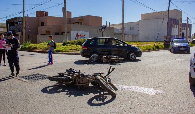 El accidente se registró minutos después de las 14.30 entre un automóvil Volkswagen Suran, una motocicleta Zanella 150 centímetros cúbicos y otra marca Motomel modelo Skua de 150.