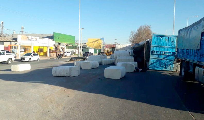 Un camión Iveco remolcaba un acoplado con fardos de fibra de algodón cuando dio un tumbo en el ingreso a la rotonda del sector. El vehículo era conducido por un hombre de 56 años, domiciliado en la ciudad bonaerense de Chivilcoy.