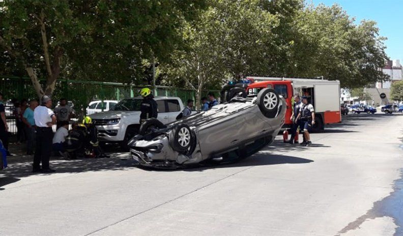 El accidente ocurrió alrededor de las 12.30 en avenida Mugnaini al 700, cuando un Peugeot 208 que circulaba por calle Andrés Dadone impactó con una camioneta VW Amarok y dio un tumbo.