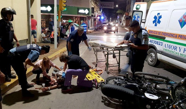 Un ciclista (40) y un motociclista (34) protagonizaron esta noche un fuerte choque en pleno centro de la ciudad, y los dos debieron ser hospitalizados con politraumatismos.