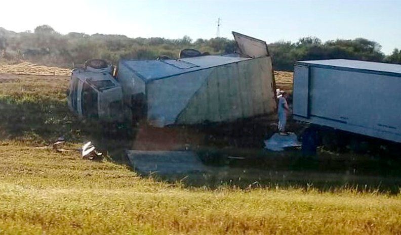 La información policial indicó que el Mercedes Benz 1720 iba cargado con carne de cerdo cuando el conductor perdió el control del rodado y volcó al cantero central.