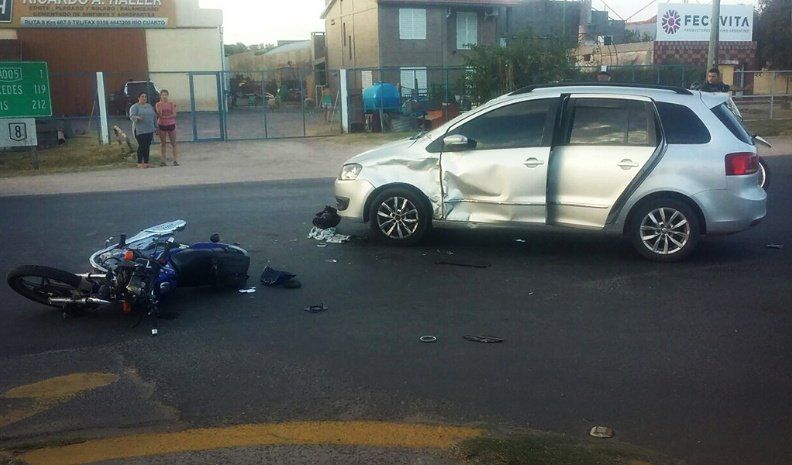 El accidente se registró en la tarde de ayer, cuando por causas que se trata de establecer colisionaron un automóvil Volkswagen Suran y una motocicleta marca Suzuki de 125 centímetros cúbicos que era guiada por Alberto Ostrini, quien fue asistido en el lugar y derivado al Hospital San Antonio de Padua para una mejor atención por el servicio de emergencias que fue convocado en el lugar del accidente.