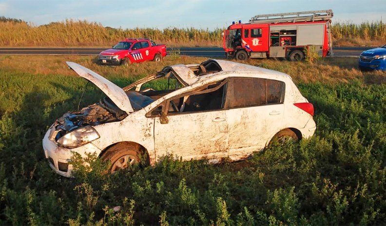 Por causas a establecer, el conductor del automóvil Nissan Tiida volcó que viajaba de sur a norte perdió el control, pisó la banquina oeste cruzó hacia el otro lado y dio varios tumbos sobra la banquina del sector este.