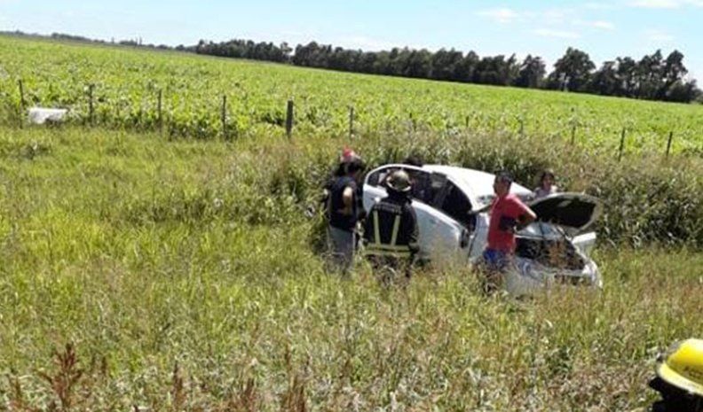 Un Chevrolet Aveo, color blanco, en el que viajaban cuatro ocupantes de Río Cuarto salió de la carpeta asfáltica y terminó a varios metros de la banquina después de dar un tumbo. En el momento del accidente circulaban de oeste a este.