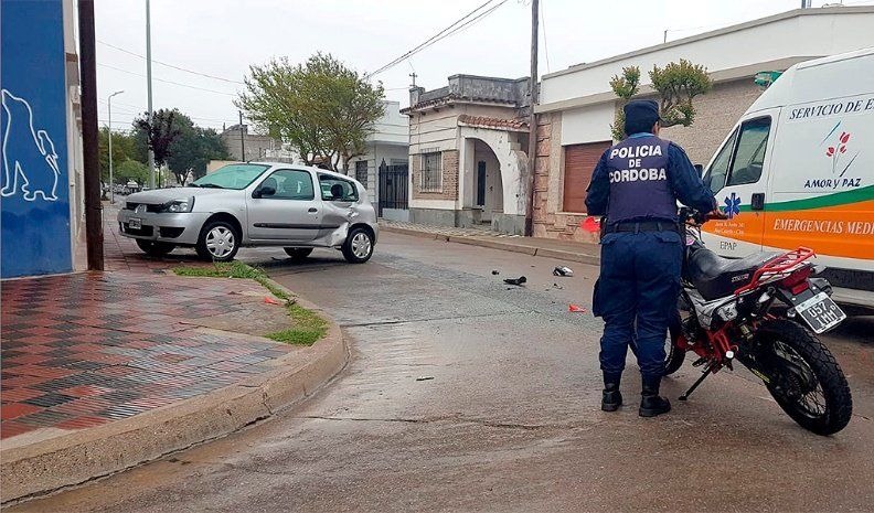 El conductor de una moto resultó lesionado después de chocar contra un automóvil, que hizo un trompo y quedó sobre una de las veredas en la intersección de Lavalle y Alejandro Roca.