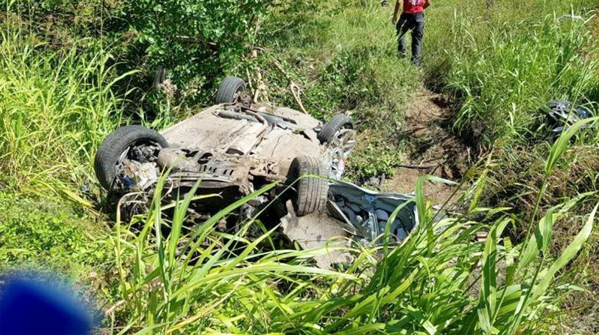 Por la velocidad a la que circulaban, el auto cruzó el guardarrail, voló y terminó cayendo en una alcantarilla, dado vuelta.