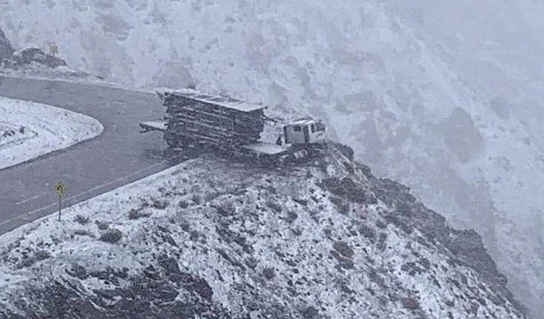 Un camión quedó al borde del precipicio cuando curzaba la cordillera de los Andes a través del camino de los Caracoles. El sitio Aconcagua News reflejó el momento en el que el transporte quedó a un costado de la ruta 60, en territorio chileno.