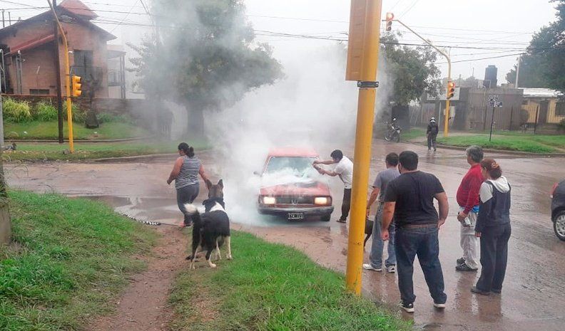 El siniestro se registró alrededor de las 9.20 en inmediaciones de calles Estados Unidos y Francisco Muñiz. En principio, un desperfecto eléctrico en el motor de un Volkswagen Gacel originó un foco ígneo que fue controlado en un primer momento por el conductor con un extinguidor.
