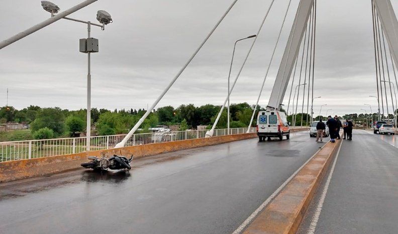 Una mujer de 42 años resultó herida esta mañana al ser colisionada por un automóvil desde atrás en momento en que atravesaban el puente del Bicentenario (colgante) de norte a sur, informaron desde la Departamental policial local.