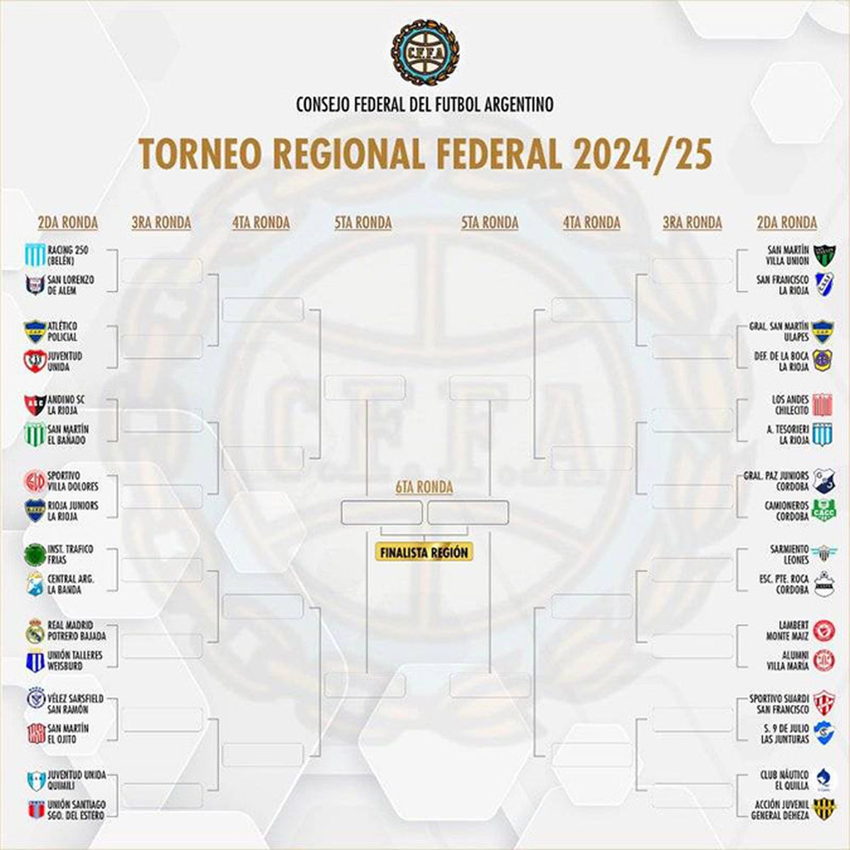 Los dirigidos por Maximiliano Ractoret, es junto con San Francisco (La Rioja), Central Argentino (La Banda), San Lorenzo Alem (Catamarca), San Martín (El Bañado, Catamarca), Atlético Policial (Catamarca), Sportivo Suardi (Suardi), 9 de Julio (Las Junturas) y Sarmiento (Leones) uno de los ocho equipos, sobre 32, que llegan a esta instancia en la condición de invicto.