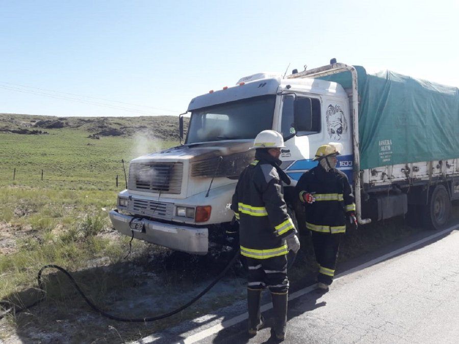 En la mañana de hoy un camión Mercedes Benz con acoplado se incendió de forma parcial. El fuego afectó el área del motor del transporte.