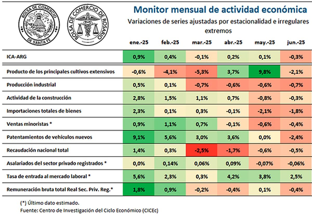 Así, en los primeros seis meses del 2025 acumuló una suba del 1,4%, mientras que la tasa de cambio interanual se ubicó en el 4,9%. “La caída de junio borró la leve recuperación que presentó el indicador durante abril y mayo, dejándolo en un nivel idéntico al de febrero”, detalló la Bolsa rosarina.