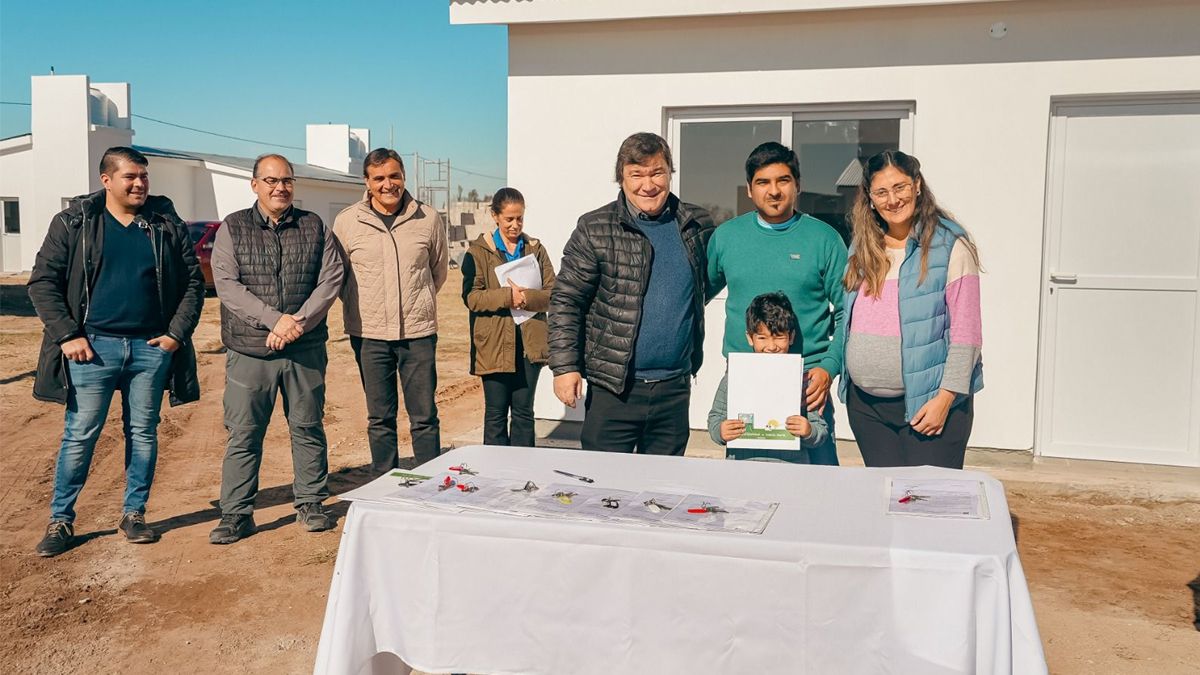 En esta oportunidad, el intendente Jorge Marino, acompañado por secretarios y concejales, entregó las llaves junto a las actas de posesión y garantía de las viviendas ubicadas entre las calles Almafuerte, Castro Barros y La Pampa.