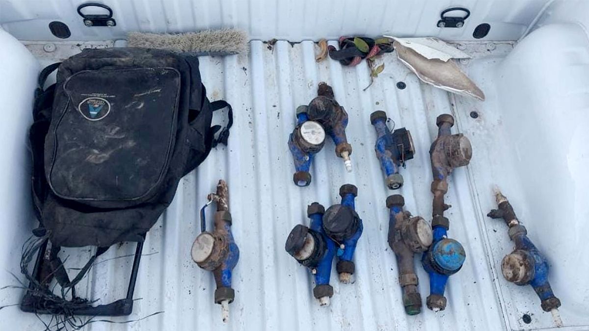En la intersección de Ranqueles y Ruy Díaz de Guzmán, el personal policial identificó a un joven con una mochila negra, que al ser revisada llevaba una decena de medidores de agua.