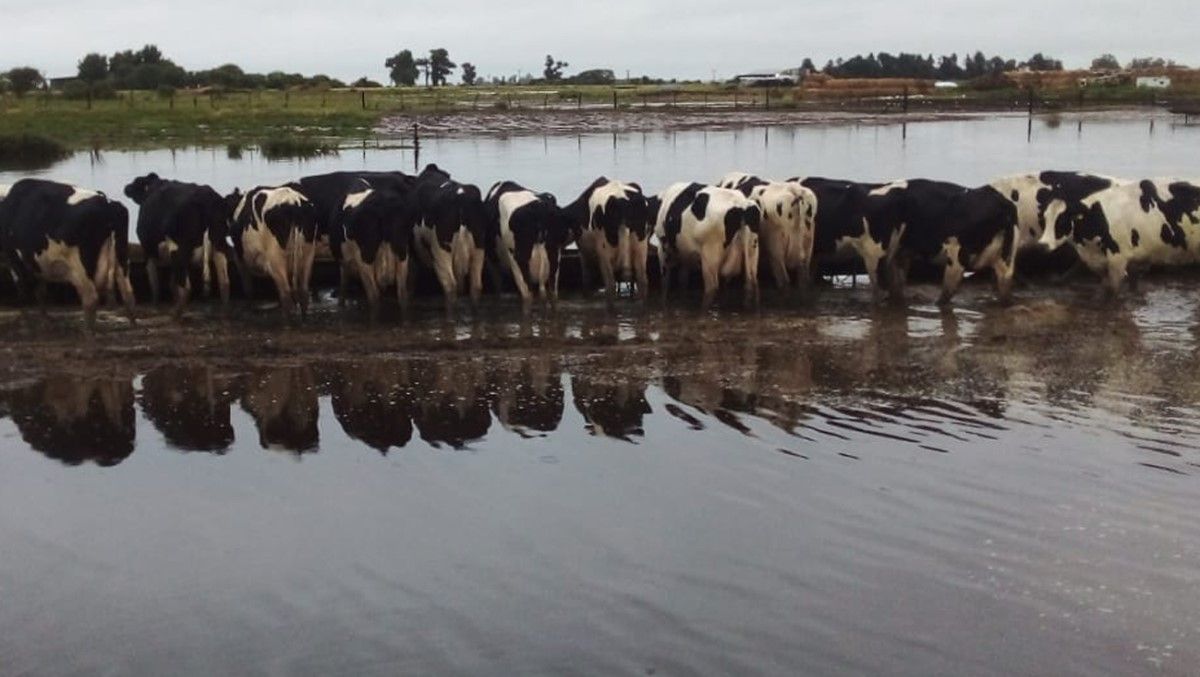 En la zona rural, los campos mostraban lotes anegados y los animales en medio del agua.
