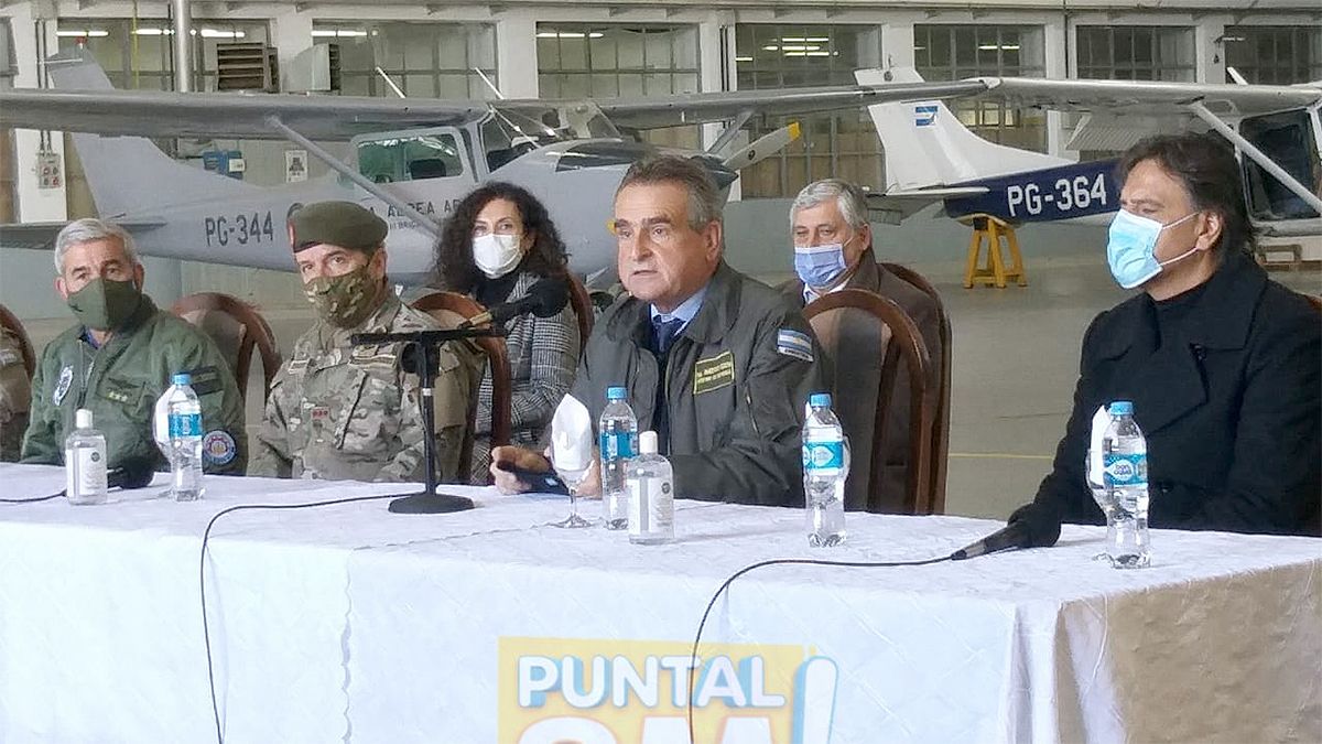 En una rueda de prensa realizada en uno de los hangares del establecimiento, el ministro agradeció la presencia de los distintos funcionarios que hoy lo recibieron.
