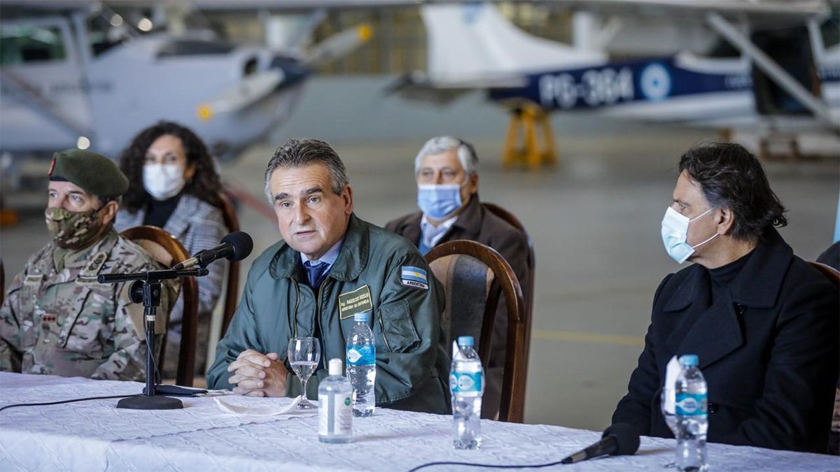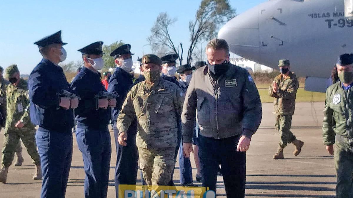 El ministro está acompañado por autoridades militares, provinciales y locales.