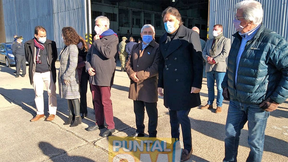 El ministro de Defensa de la Nación, Agustín Rossi, llegó al Área Material de Río Cuarto alrededor de las 10.10 y fue recibido por una comitiva de funcionarios y autoridades de la fuerza, encabezada por el jefe del Área Material de Río Cuarto, Armando Chialvo.