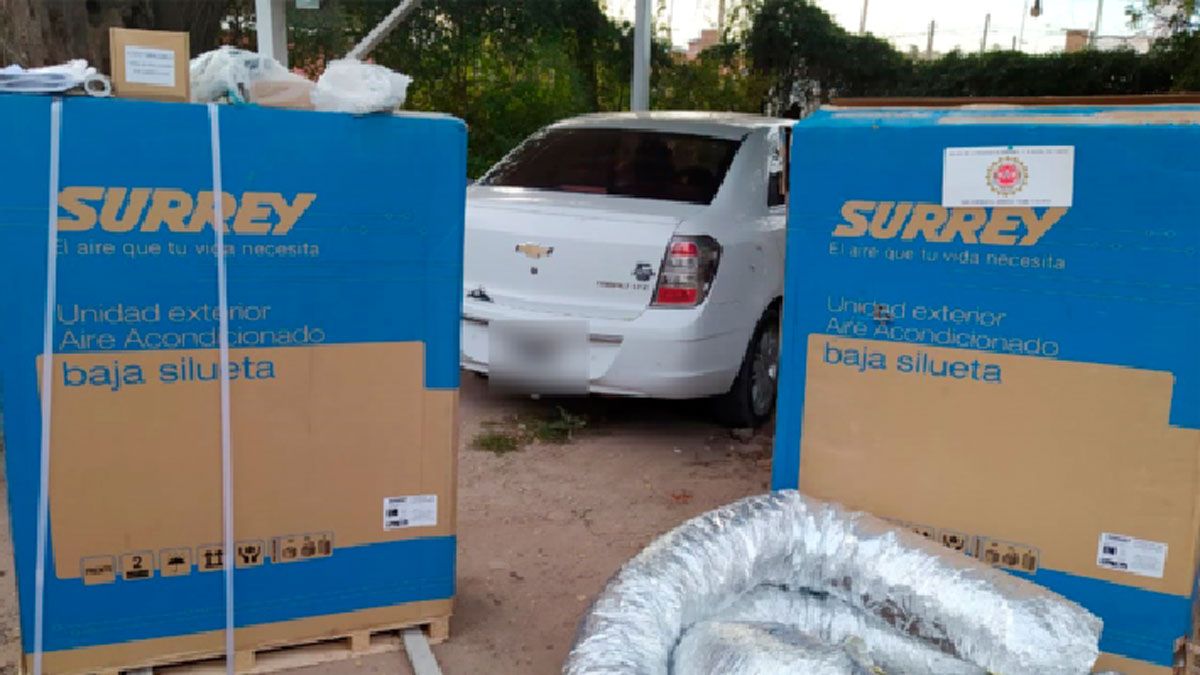 En el avance del proceso, los policías se constituyeron en un descampado ubicado fuera del anillo de circunvalación de la ciudad. En el denominado camino de Albertengo, los policías secuestraron dos motores de aire acondicionado, con sus respectivas cajas de embalaje y una bolsa de nylon con controles remotos y piezas para la instalación de los equipos.