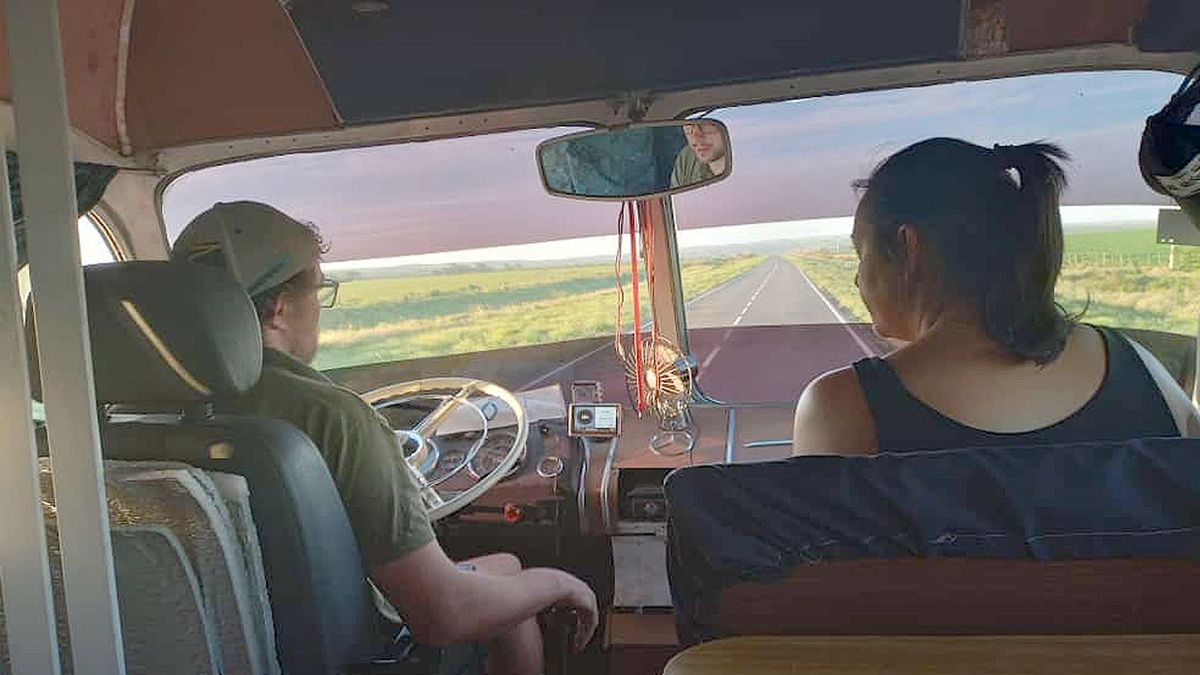 El colectivo convertido en un confortable motorhome es un Mercedes Benz 321 del año 1962. “Tienen todas las comodidades, sea aire acondicionado, calefacción, inversores, grupo electrógeno, para ir cómodos. Más de todo por el tema de los chicos. Estamos en este proyecto medio loco y organizando los últimos detalles antes de partir”.