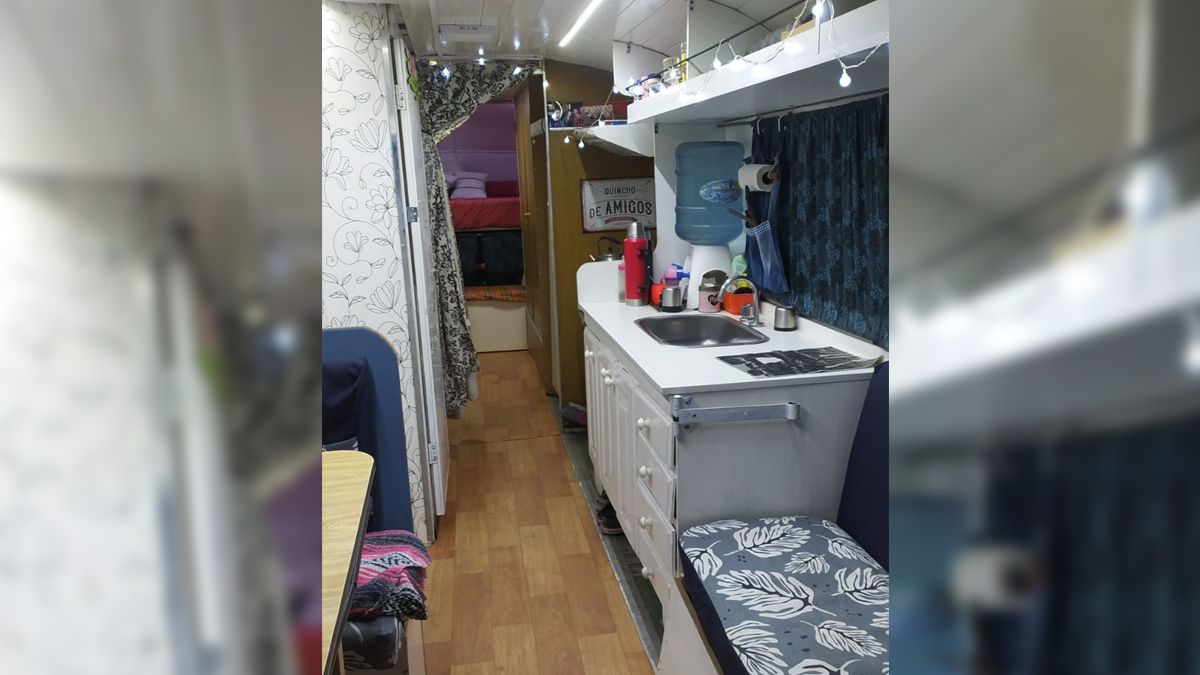 “Pablo más que nada, él se defiende con el tema de electricidad, la instalación de la cocina, la instalación de los tanques de agua. Hemos pintado, hecho la funda de los almohadones, hecho los sillones, que cortó un mueble que teníamos en casa y armamos los sillones. Nos han regalado la butaca, hemos hecho cortinas, los muebles, los lugares de guardado, hemos ido a la maderera y ellos nos han cortado las maderas a medida. O sea que todos estos siete meses fueron a pulmón”, sigue contando Yamila.