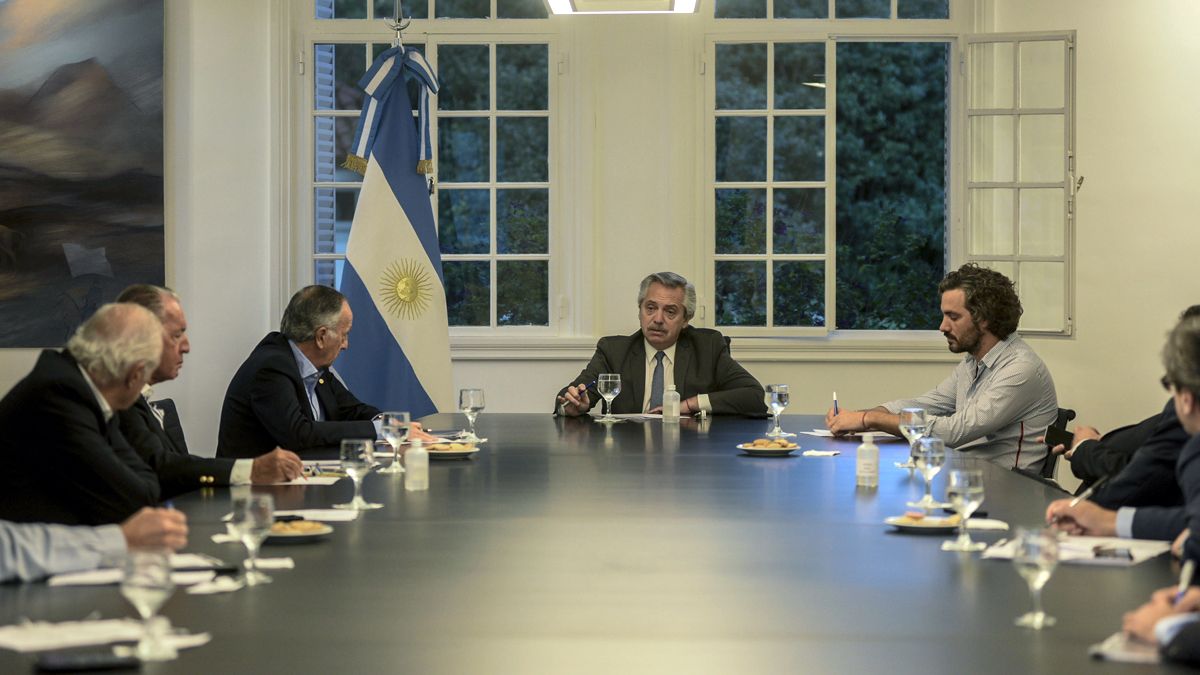 El presidente Alberto Fernández se reunió esta tarde con representantes de la Unión Industrial Argentina (UIA), con quienes analizó las medidas económicas tomadas por el Gobierno nacional ante la pandemia de coronavirus COVID-19 y en el marco del aislamiento social, preventivo y obligatorio.