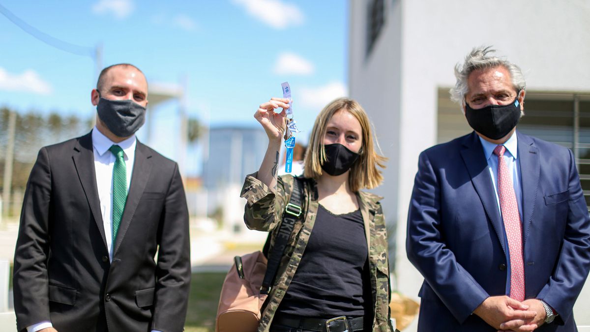 El presidente Alberto Fernández encabezó hoy un acto de entrega de viviendas en el predio Procrear de Ezeiza y aseguró que llegó al Gobierno para "terminar lo que empezó" Néstor Kirchner y "lo que siguió" Cristina Kirchner. Además, el jefe de Estado le dio un respaldo al ministro de Economía, Martín Guzmán, en otra jornada en la que el dólar libre tuvo una fuerte escalada y cerró por encima de los $160.