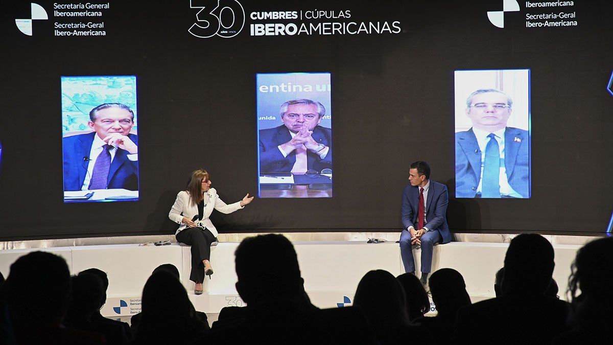 El encuentro, organizado de manera semipresencial conjuntamente por la secretaría General Iberoamericana y por España, como país anfitrión, se desarrolló en forma de diálogo entre los mandatarios y fue presidido por el Rey Felipe VI, en la Casa de América de Madrid.