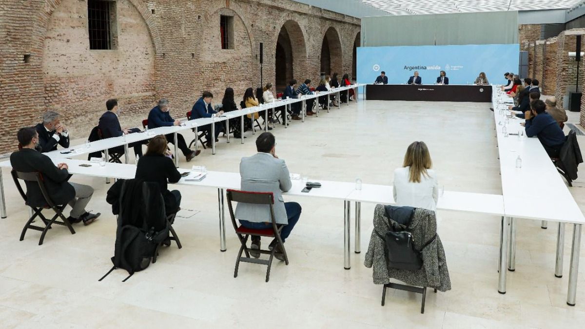 El presidente Alberto Fernández participó hoy, junto al jefe de Gabinete Santiago Cafiero, de un encuentro con personalidades y representantes de distintos grupos de pensamiento e investigación que forman parte de Agenda Argentina, en el Museo del Bicentenario de Casa Rosada.