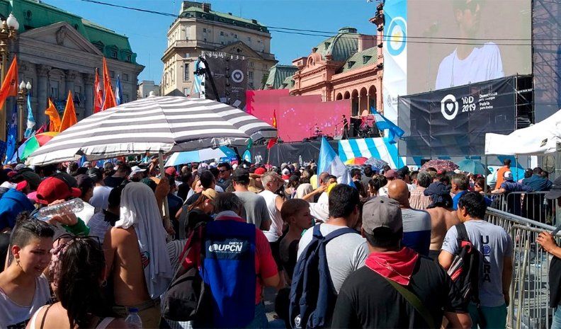 Hoy la congregación comenzó bien temprano: las diversas agrupaciones militantes buscaron ubicarse lo más cerca del escenario, lo que les permitirá estar más próximos a los dirigentes.