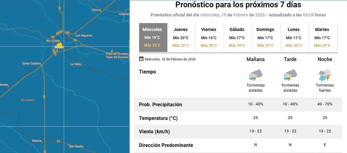 En un miércoles que muchos lo viven como un lunes, el Servicio Meteorológico Nacional emitió un alerta amarilla por tormentas para Río Cuarto y el sur provincial.