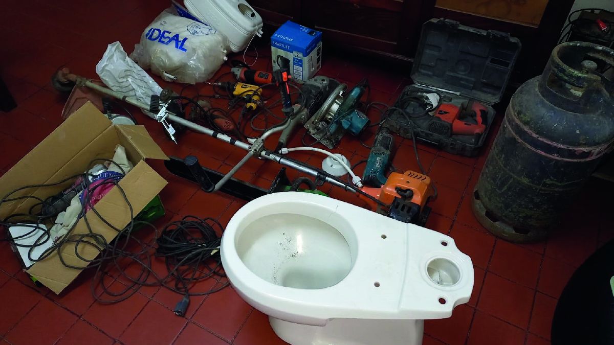 En el lugar se secuestró una importante cantidad de herramientas de mano eléctricas y otros objetos.