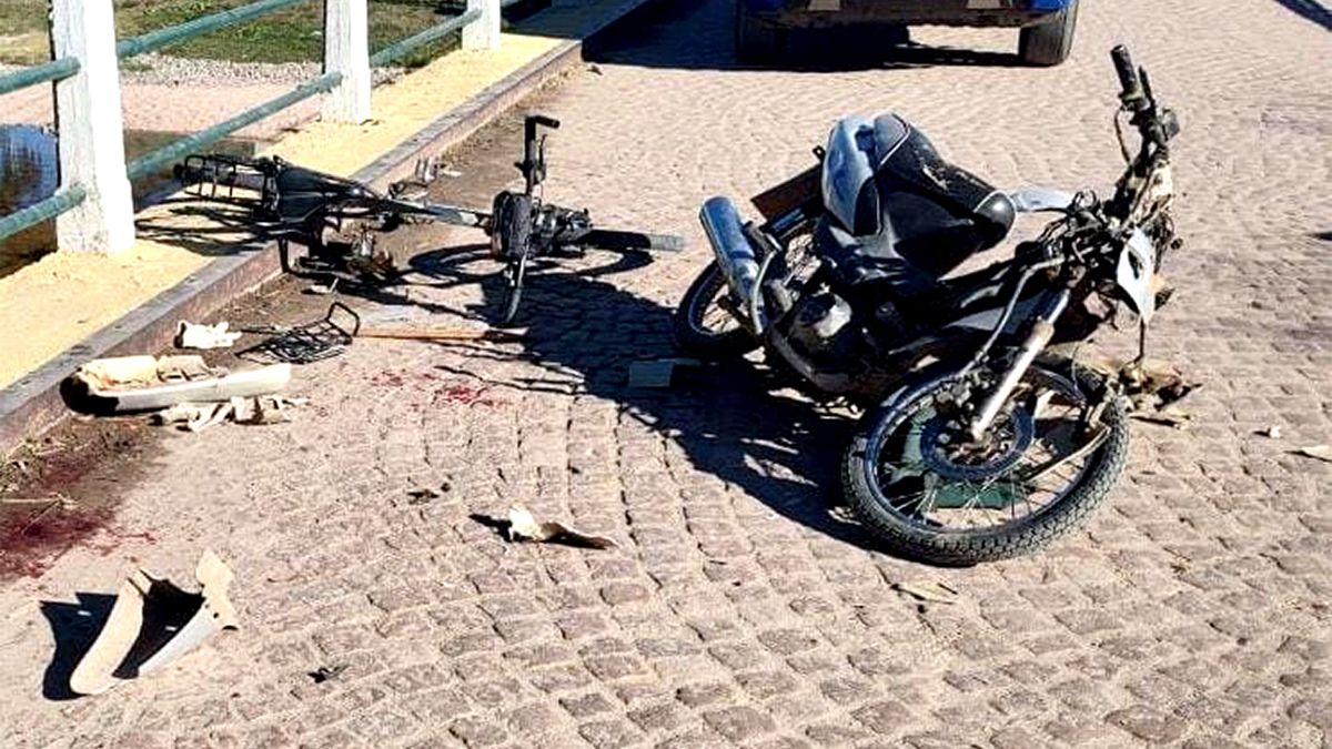 El siniestro se registró a las 16.40 de ayer sobre el puente carretero de la localidad cuando se produjo el impacto entre una moto Motomel de color gris y una bicicleta rodado 26.