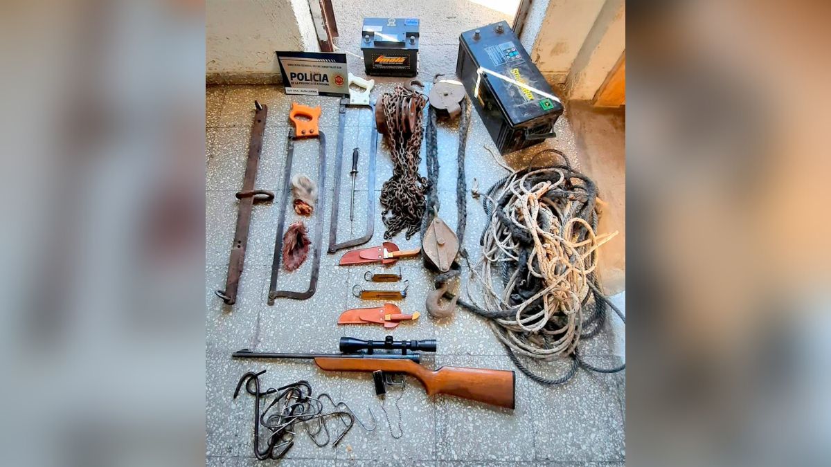 También se procedió a la incautación de una carabina, herramientas y elementos de corte para faena de animales.