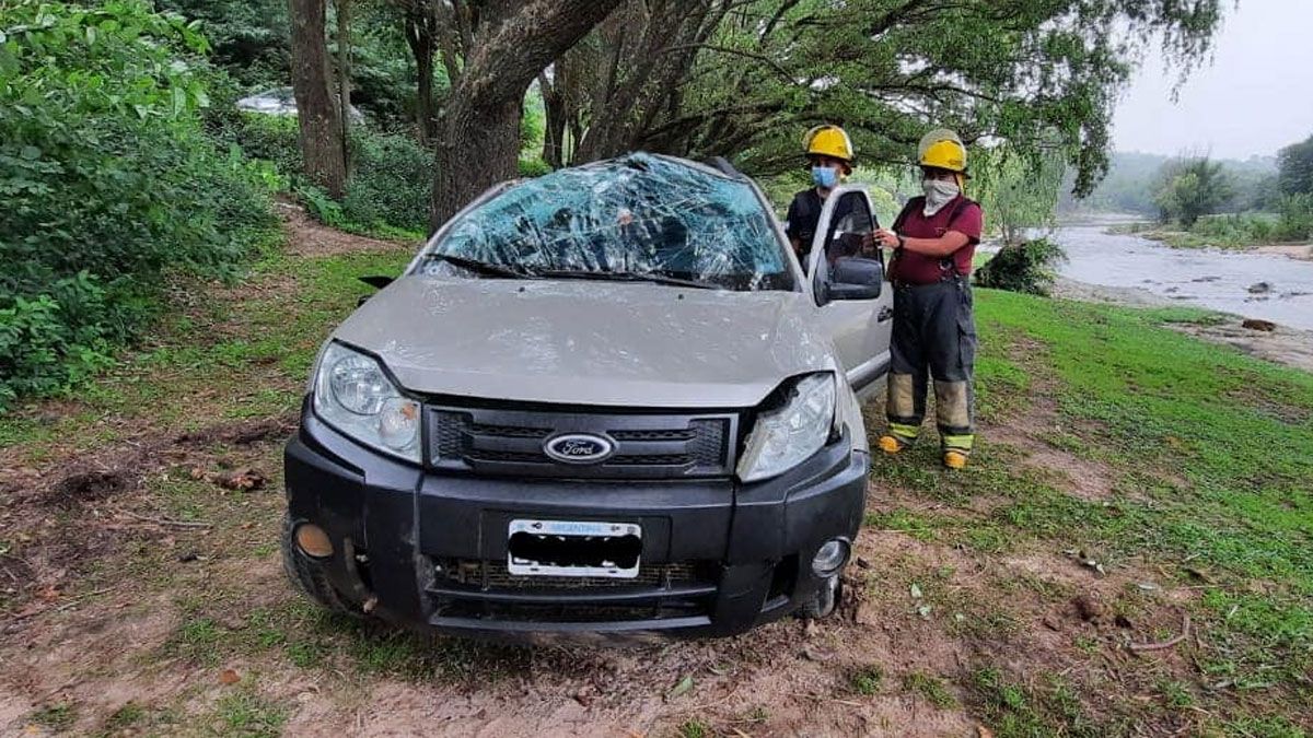 Por causas a establecer, una Ecosport al mando de una mujer de 35 años con domicilio en Jovita, quien iba acompañada de sus hijos, despista y vuelca.