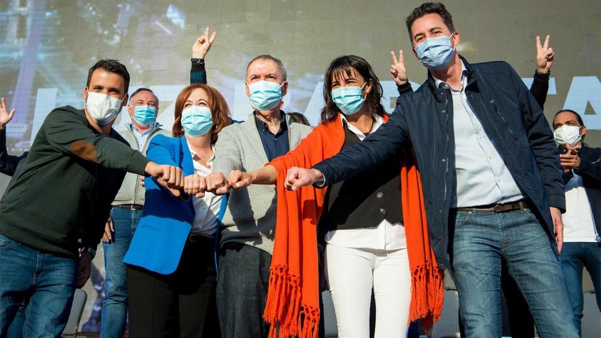 En el escenario estaban presentes las cabezas de las listas de senadores y diputados, Alejandra Vigo y Natalia de la Sota, junto al resto de los postulantes: Eduardo Accastello, Ignacio García Aresca, Claudia Márquez, Sergio Busso, Claudia Martínez, Fabio Guaschino, Rosalía Cáceres, Gabriel Musso, Teresa de los Ángeles Gualda y Sergio Fittipaldi.