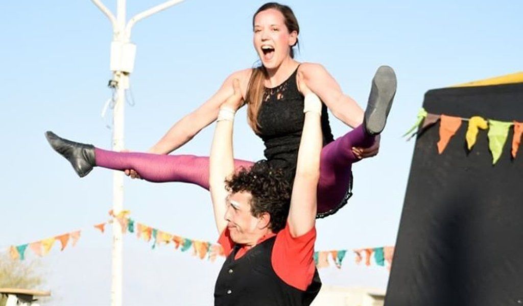 Sinopsis: Los artistas entran a escena y comienzan las risas. Aroldo y Antonia son dos personajes que navegan por el mundo del circo jugando y desafiándose bajo la consigna de “sin riesgo no hay circo”. A través de la realización de números y secuencias de malabares, acrobacia, contorsiones, cable tenso y acrobacia aérea, transcurre este espectáculo apto para todo público.