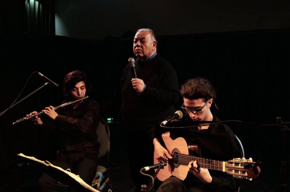 Cuerdas, Palabras y Viento. Se presenta el grupo de poesía y música popular integrado por Magali Tomino (violín). Bruno Rigo Fulchieri (Guitarra y canto) Álvaro Guzmán (Flauta traversa) y Alfredo Gestal (Narración, recitado y canto).