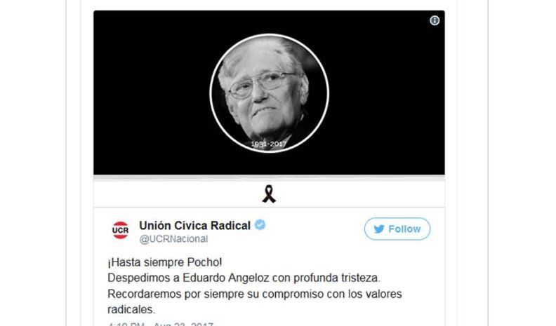 A través de las redes sociales se multiplican los mensajes por el deceso del histórico dirigente radical.