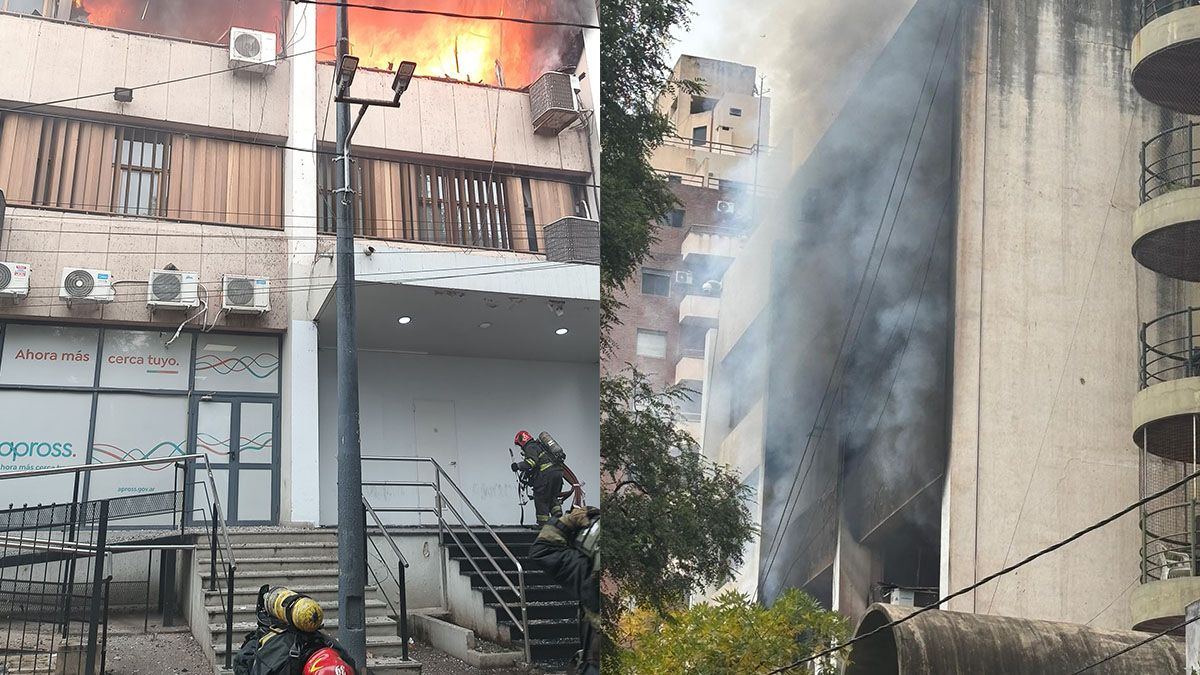 El epicentro de ese incendio fue el edificio de la obra social provincial, en pleno centro de la ciudad. Todo se habría iniciado en el segundo piso y por el momento no confirmaron heridos.