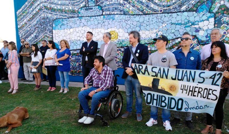 En un emotivo homenaje a los 44 tripulantes del Ara San Juan, se realizó esta mañana un acto frente al mural que se ubica en el Paseo Cultural del Andino, ubicado en Bulevar Almafuerte al 300.