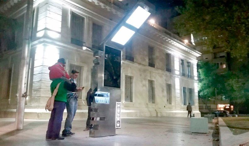 El tótem que instalarán desde mañana contará con distintos servicios como conexión Wifi, cargadores USB para dispositivos móviles, pantallas con información, cámaras de seguridad y energía solar, además de dispenser con agua caliente.