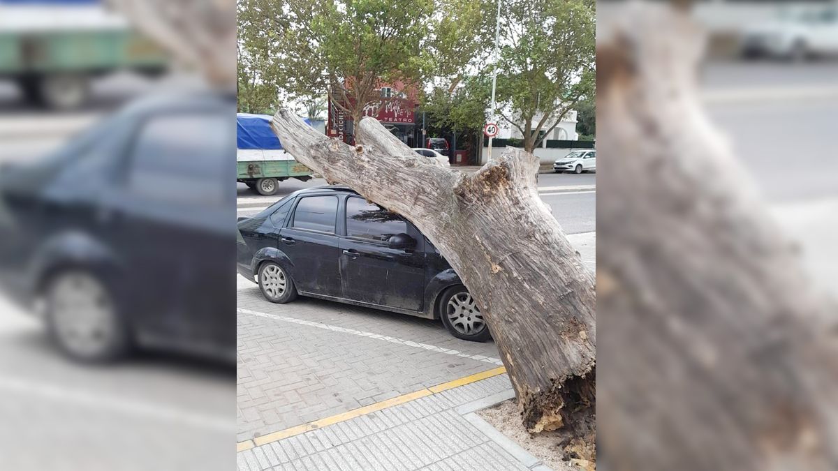 Un automóvil Ford Fiesta fue aplastado por un árbol frente al edificio Cardinales, sobre avenida Marconi. La planta se desplomó en horas del mediodía sobre el vehículo que se encontraba estacionado en el lugar, sin ocupantes. No hubo personas heridas y rápidamente se trabajó en el lugar para retirar la pesada estructura sobre la unidad. Rápidamente, una grúa retiró la planta sobre el automóvil, por lo que el tránsito estuvo interrumpido durante varios minutos.