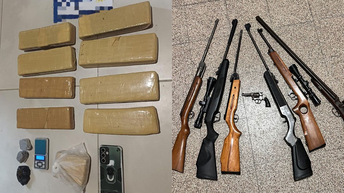 En los inmuebles registrados se logró el decomiso de un importante arsenal, compuesto por nueve armas de fuego, cartuchería y vainas servidas de distintos calibres. Además, se secuestraron 6,5 kilos de marihuana distribuidos en paquetes tipo “ladrillo”, una balanza digital y dinero en efectivo.