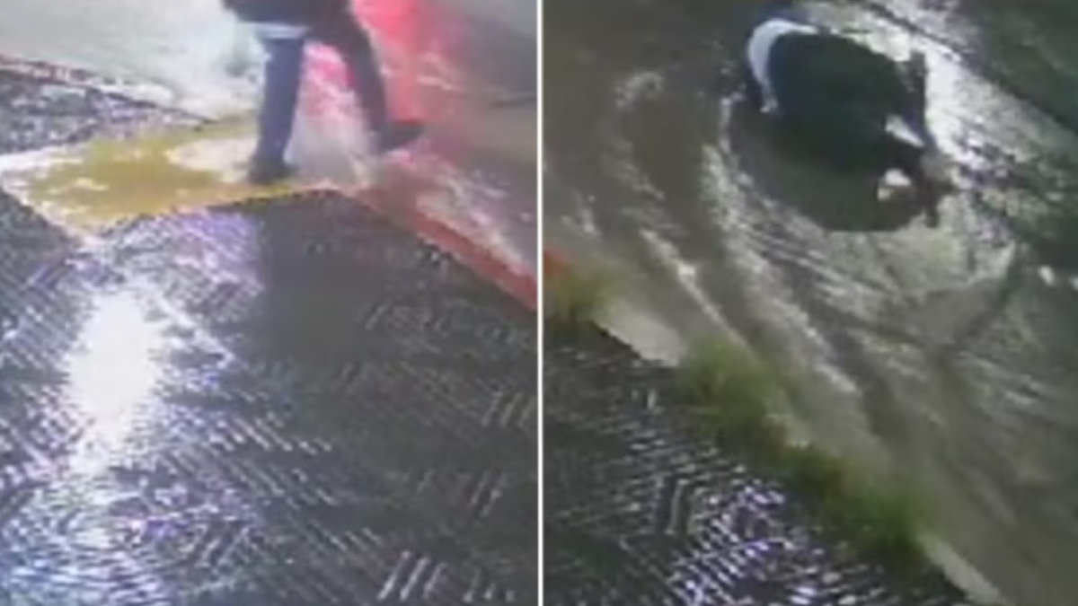 La escena, captada por una cámara de seguridad, mostró el impacto y la posterior huida del vehículo, dejando a la mujer tirada sobre el asfalto mojado.