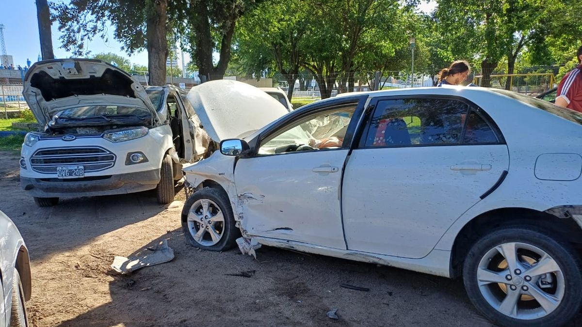 En la tarde de este sábado un automóvil Toyota Corolla despistó a la salida del puente Obregón Cano y colisionó con otros tres que estaban estacionados en calle Capitán Giachino al 50.